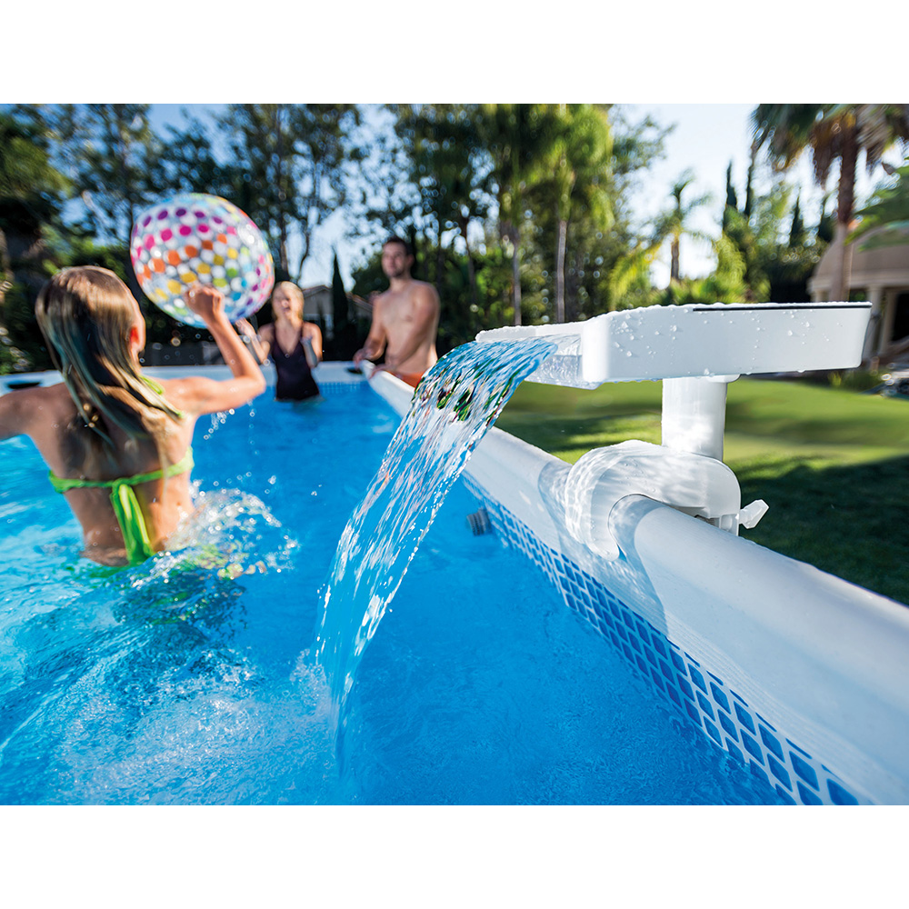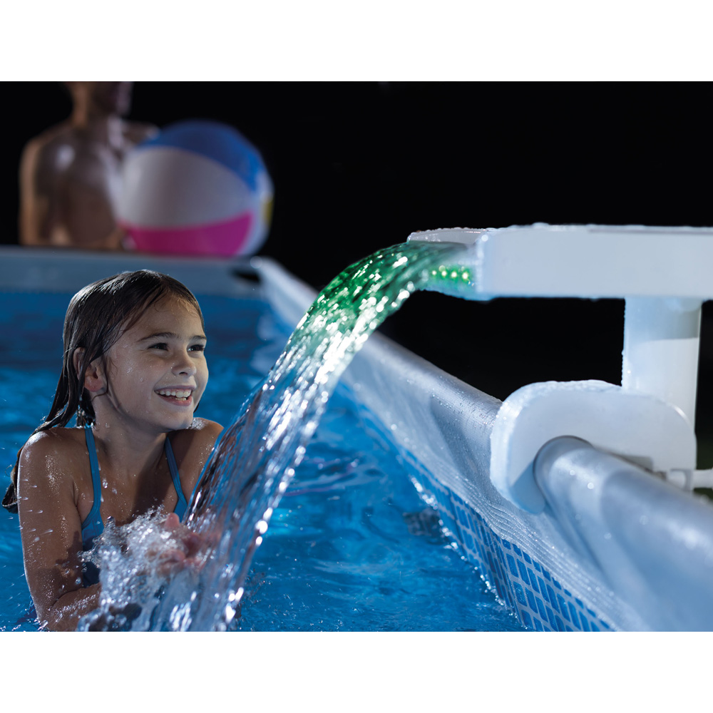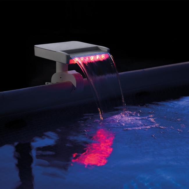 Συντριβάνι Led 3 ζωντανά χρώματα: Κόκκινο, Μπλέ, Πράσινο. Ενσωματωμένη ηλεκτρική γεννήτρια τροφοδοτεί τα LED φώτα (δεν χρειάζονται μπαταρίες ούτε σύνδεση στο ρεύμα) Ταιριάζει σε όλες τις στρογγυλές και παραλληλόγραμμες Metal frame & Ultra πισίνες (όχι για Easy Set, Oval, Woodgrain) Απαιτείται το φίλτρο να έχει δυνατότητα ανακύκλωσης 3,700 m3/ώρα - 9,274 m3/ώρα