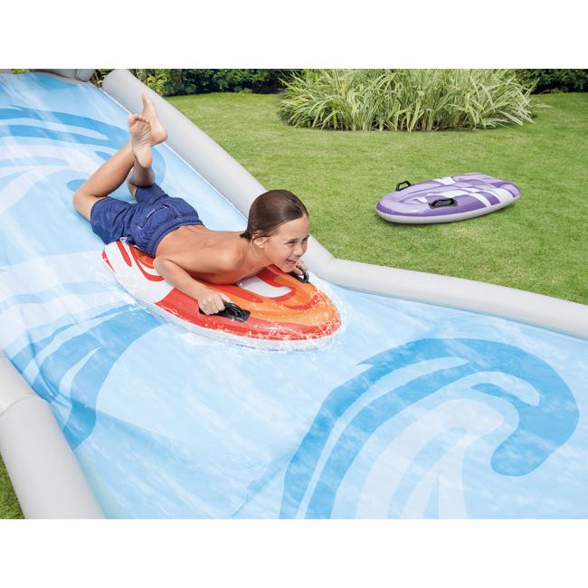 SURF' N SLIDE/Τσουλίθρα 4.60m X 1.68m X 1.57m - με 2 σερφ, εξτρα στρωματάκι κατά την προσγείωση, με δυνατότητα σύνδεσης με το λάστιχο κήπου για να βρέχει την επιφάνεια, έως 80 κιλά βάρος, επισκευαστικό κιτ/αυτοκόλλητο,  (7.60kg).