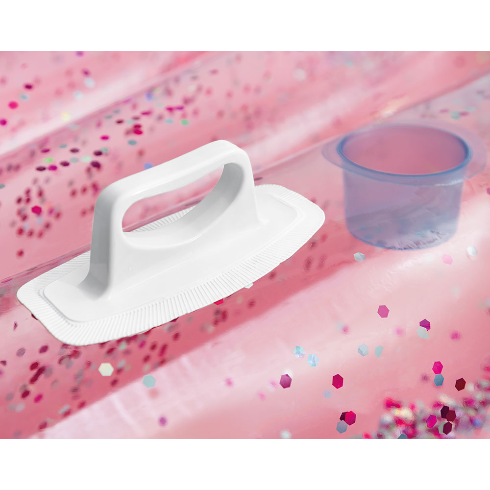 Διαστάσεις (Φουσκωμένο) 1.78m x 1.65m x 24cmΠλαστικό 0.30 mmΡοζ και περλέ γκλιτερ2 Ανθεκτικά χερούλια2 Βάσεις ποτώνΜπάλωμα