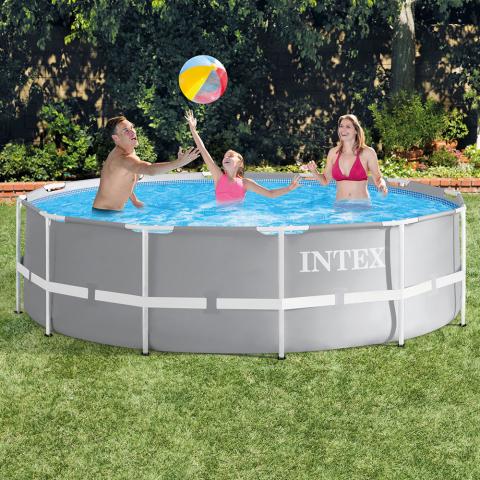 INTEX newest line pools, durable, affordable and yet the easiest to assemble, enhanced with strong powder-coated steel tubing, they are presented with a far more stylish and upscale liner in blue/gray color. They range from starter pools of 3.05m diameter X 0.76cm height to pools with of 7.32m diameter X 1.32m height.