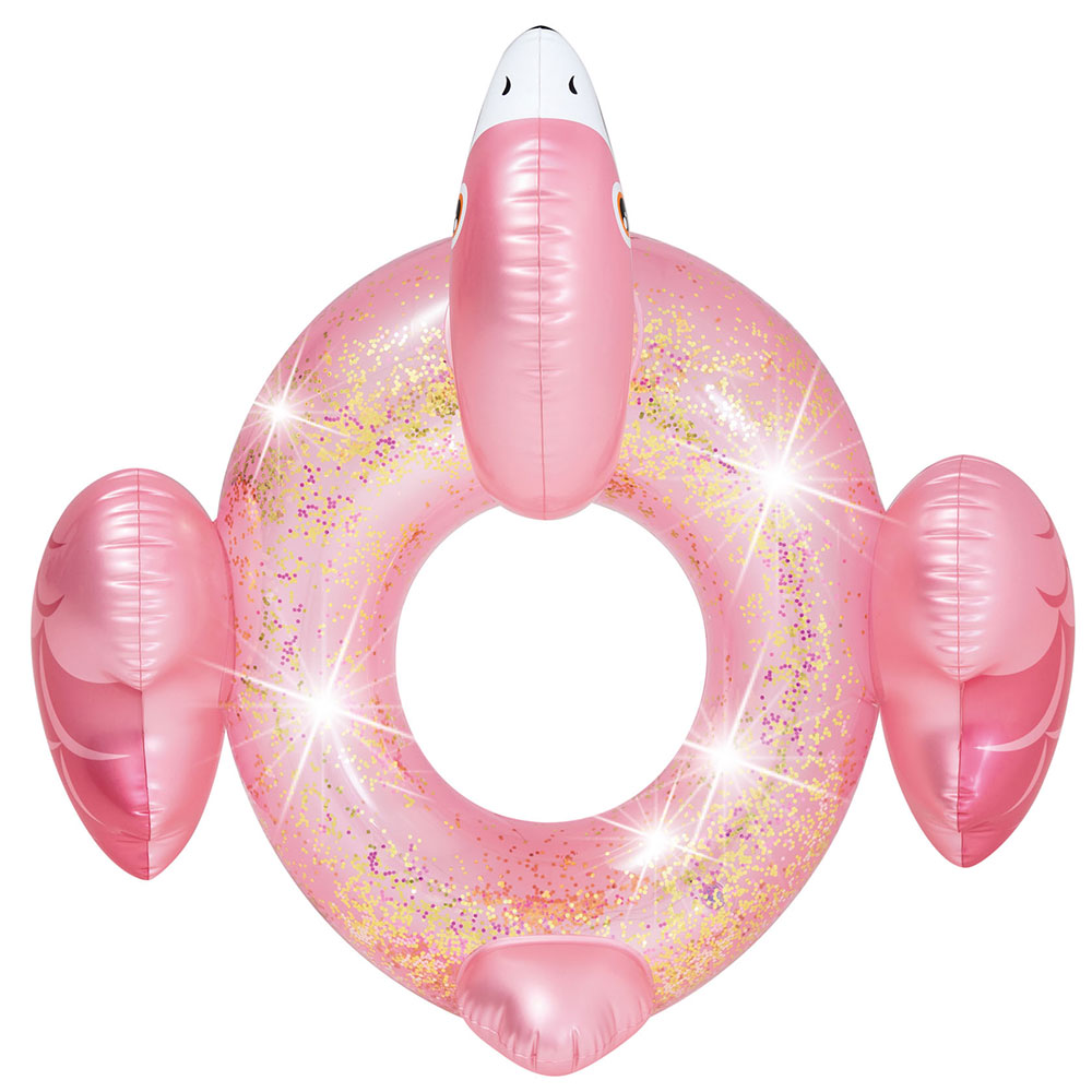 Glitter Flamingo Tube 99cm X 89cm X 71cm, with gold & pink glitter, (0.25mm vinyl), repair patch, max weight 60kg, (1.03kg)
