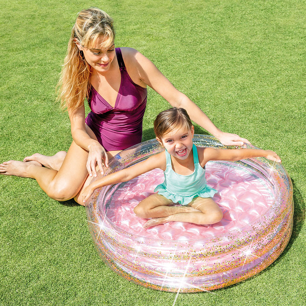 Glitter Mini Pool, 86cm X 25cm with Soft inflatable floor, (0.20mm rings & 0.18mm floor), three glitter filled rings, capacity 56lit (0.8kg) * Age 1-3